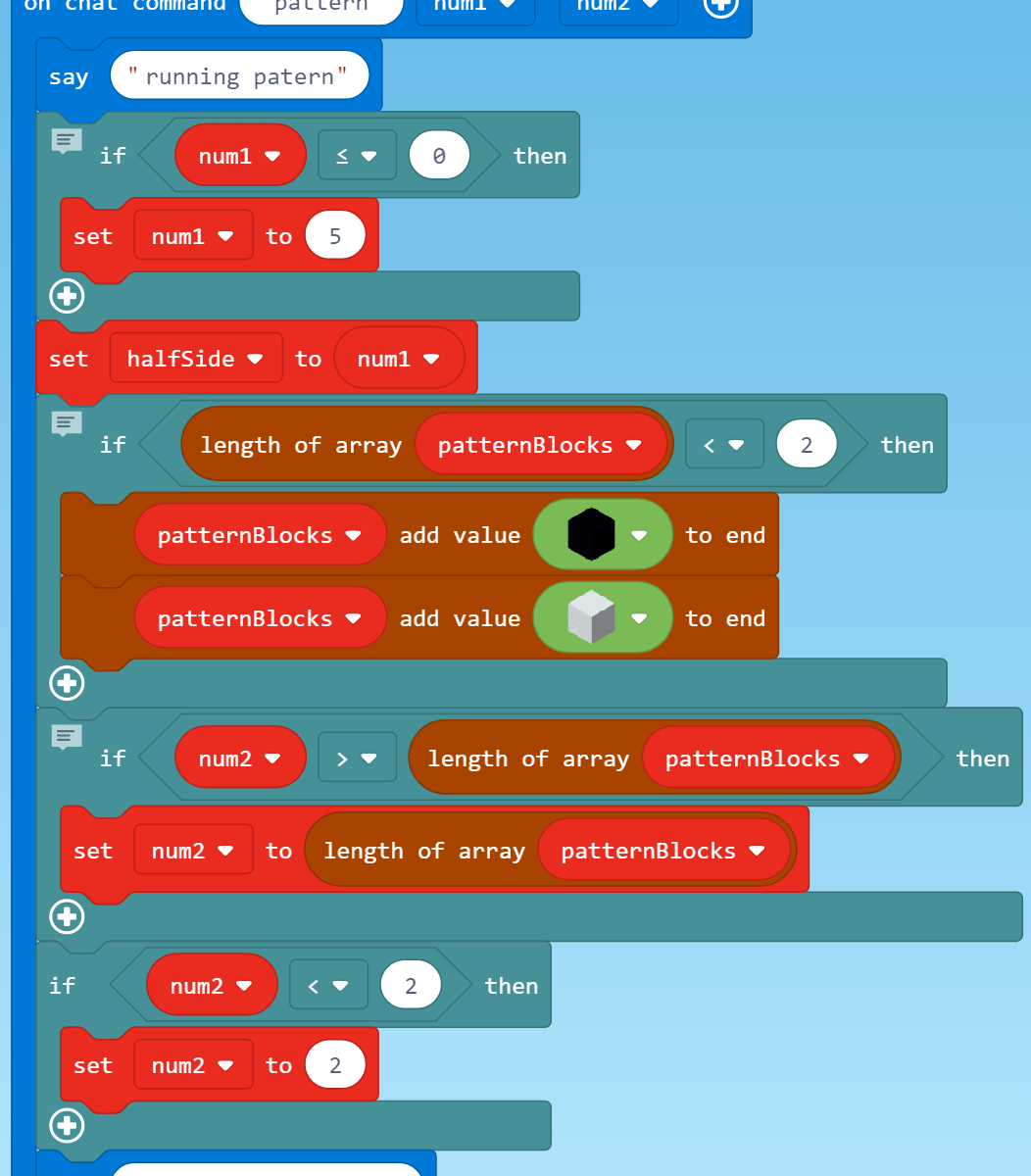 pattern code 1 Previous Next Share this:TweetLike this:Like Loading... July 5, 2018 1052 × 1291 in Creating Symmetric Patterns Using MakeCode for Minecraft