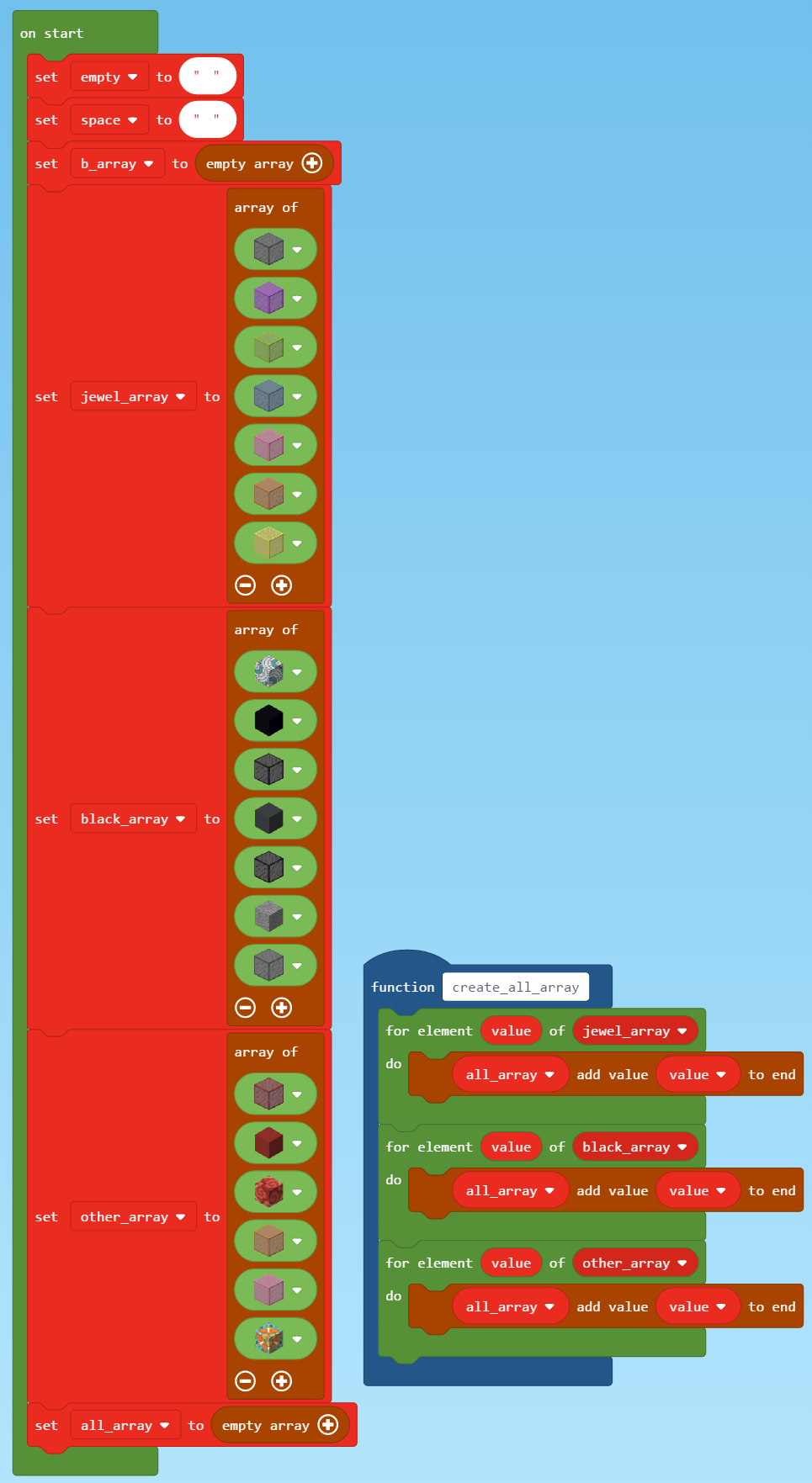 array code Previous Next Share this:TweetLike this:Like Loading... September 28, 2018 965 × 1763 in The Art of Random Cityscapes in MakeCode for Minecraft